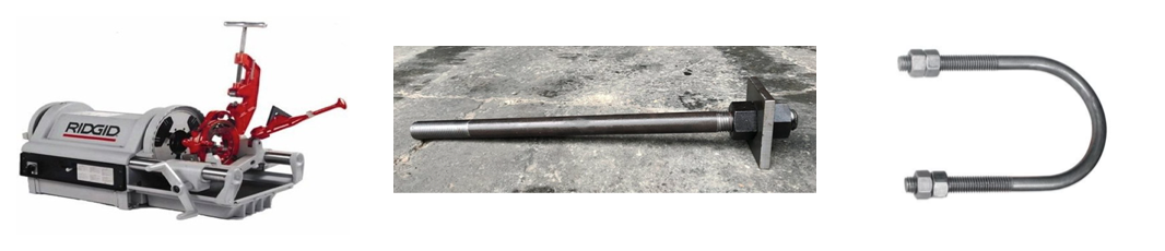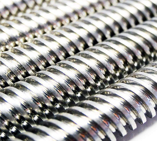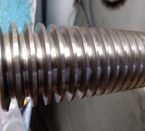 De una o varias entradas, roscas trapeciales, cuadradas, dientes, sierras que estén sometidas a grandes esfuerzos. También se pueden realizar tornillos extrusores de paso continuos de diferentes pasos para mejorar la velocidad de desplazamiento del producto.